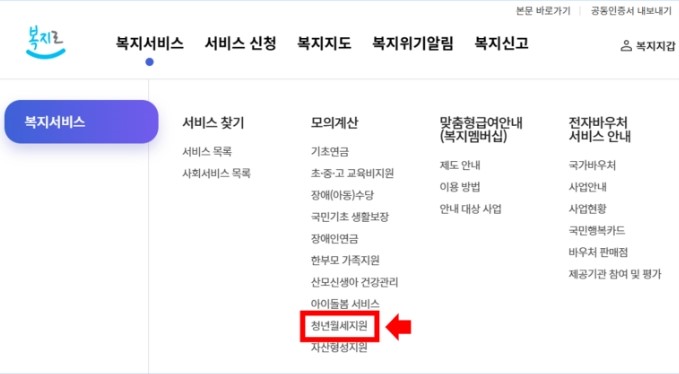 - 복지로 홈페이지(https://www.bokjiro.go.kr/) 접속